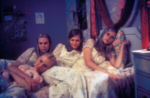 One of the most recognisable hallmarks of the girlhood aesthetic is its use of colour. Think Sofia Coppola’s The Virgin Suicides (1999), where the Lisbon sisters exist in a hazy, ethereal dreamworld of soft pinks, muted golds, and diffused sunlight. The cinematography by Ed Lachman explores reality and memory, framing the girls more as mythic beings than solid characters. This aesthetic doesn’t just look pretty, it reflects the voyeurism and romanticisation that often surrounds teenage girls, particularly when their stories are told through the perspective of others.